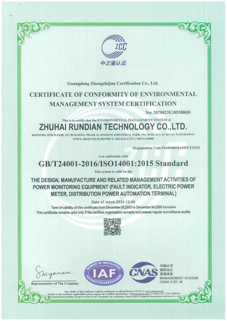 ISO14001環(huán)境管理體系認(rèn)證證書